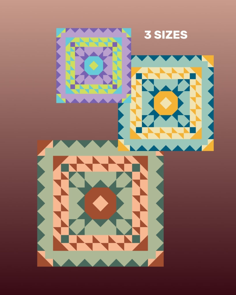 Whether you’re an advanced beginner or an experienced quilter, this pattern is full of possibilities. Go dramatic with bold solids, keep it calm with soft neutrals, or mix prints for a playful, personalized finish. It’s ideal for modern home décor, cozy throws, or baby quilts — and available in three sizes: Baby (48” x 48”), Throw (48” x 60”), and Full/Queen (80” x 96”).