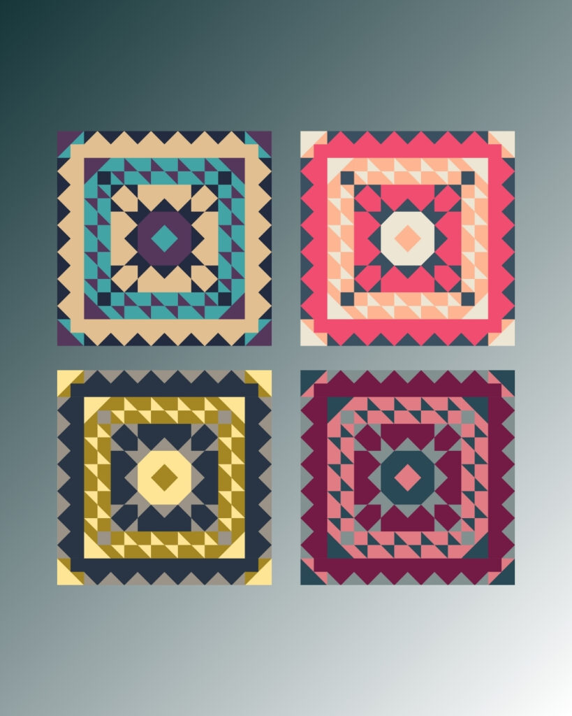 This stunning modern geometric quilt pattern is inspired by the architecture, colors, and energy of Egypt — and Christine has once again created a design bursting with color possibilities. 🌈
