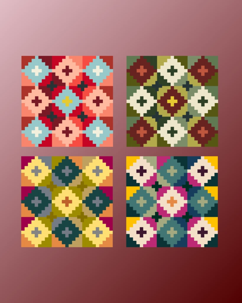 I’ve included a few mock-ups so you can see how color placement alone can completely change the feeling of the quilt — swipe through for inspiration!
