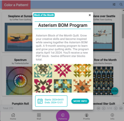 This enhancement is designed to help you discover and participate in special events like releases, Block of the Month (BOM), Sew-Along (SAL), sales, etc. |