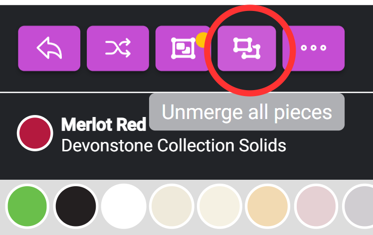 How: Click on the "Unmerge all pieces" icon to separate the pieces by color.
