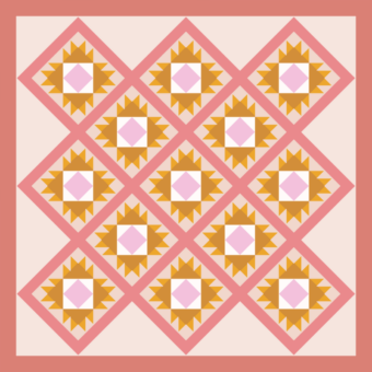 Details: Join the 6 week sew along to make this radiating  Lone Star pattern. This quilt pattern used large diamonds and strip piecing to create smaller diamonds. It comes in 3 sizes: Baby, Small Throw and Large Throw.