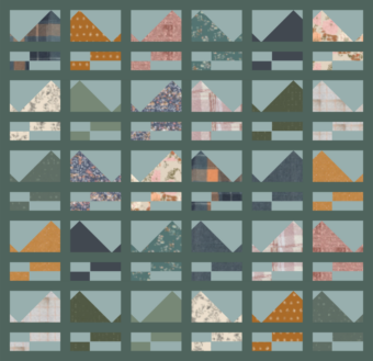 Details: Vesta uses both foundation paper piecing and appliqué to create (5) 9” blocks per row. The block pdf will be delivered on the first of each month.