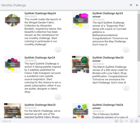 Curious about the latest patterns activated? Interested in reading interviews with our designers? Or perhaps you're searching for the rules of the current QuiltInk Challenge?