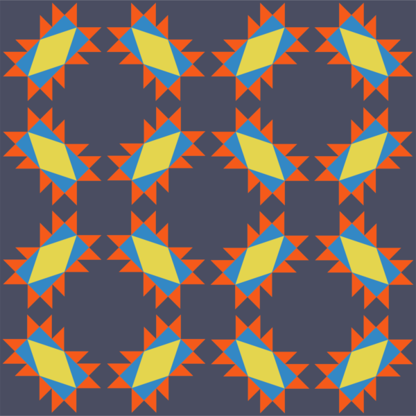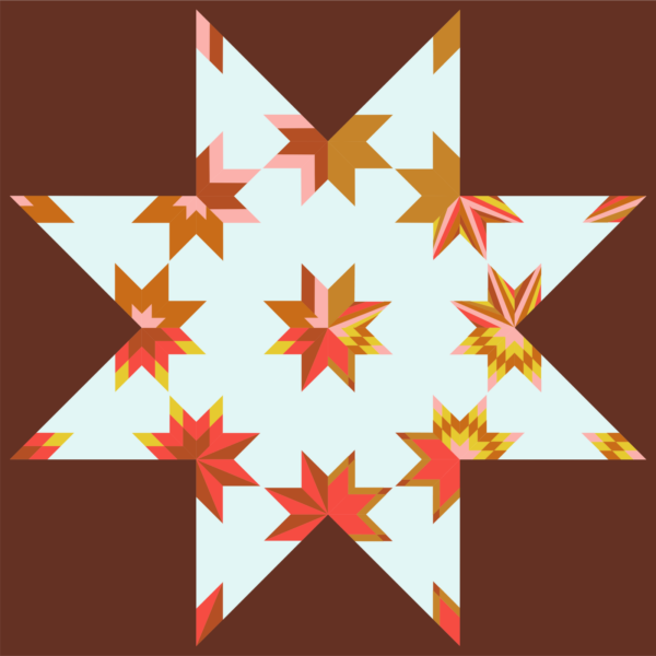 Details: Vesta uses both foundation paper piecing and appliqué to create (5) 9” blocks per row. The block pdf will be delivered on the first of each month.