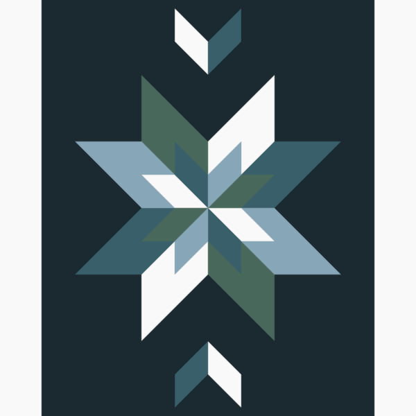 Mt. Mitchell, part of the Land of the Sky collection, shines bright as a beginner-friendly pattern. The design features large-scale half-square triangles and squares which are striking in solids but also perfect for showcasing beautiful prints. The colors of the cover quilt represent a star in the night sky, appearing to almost leap out of the fabric in 3D. Mt. Mitchell is named for the highest peak east of the Mississippi, perfect for stargazing in the Appalachian Mountains at an elevation of 6,684 ft.