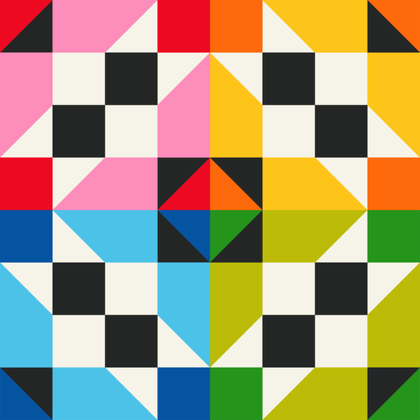 Carrefour (French for “crossroads”) is a modern pattern rooted in tradition. A classic crossroads block is scaled up and divided into four streamlined blocks, pieced in rows for easy assembly. The minimal fabric palette allows you to showcase favorite colors in a bold geometric design.