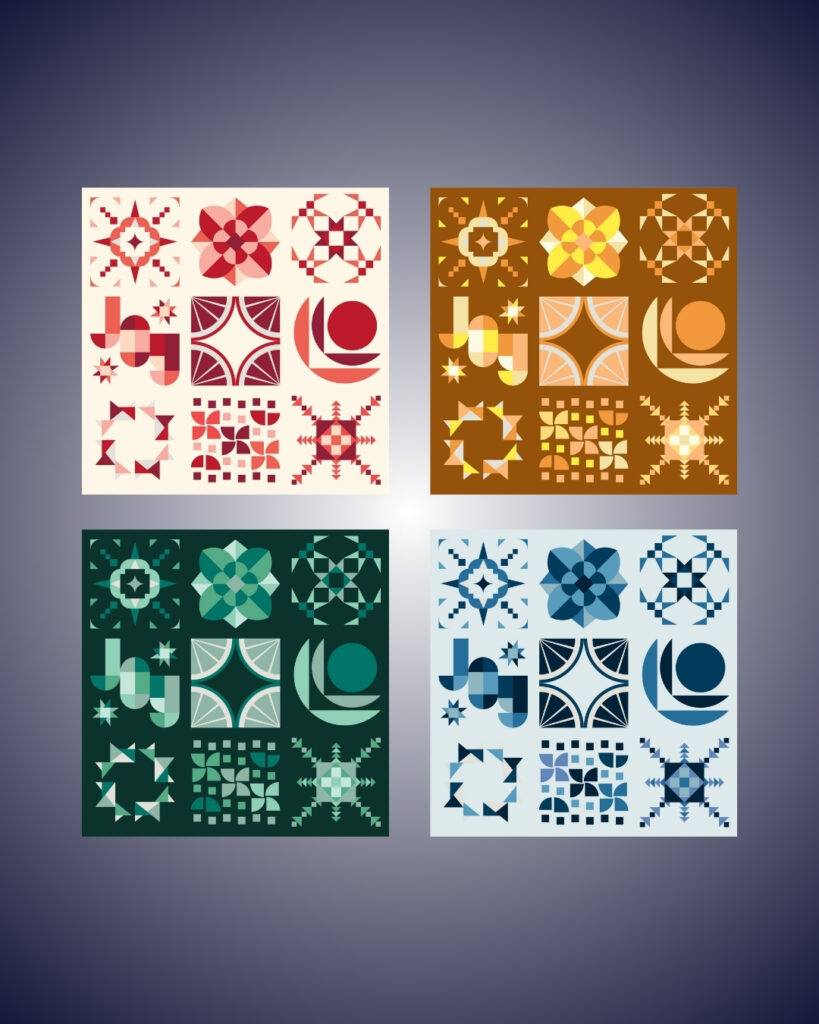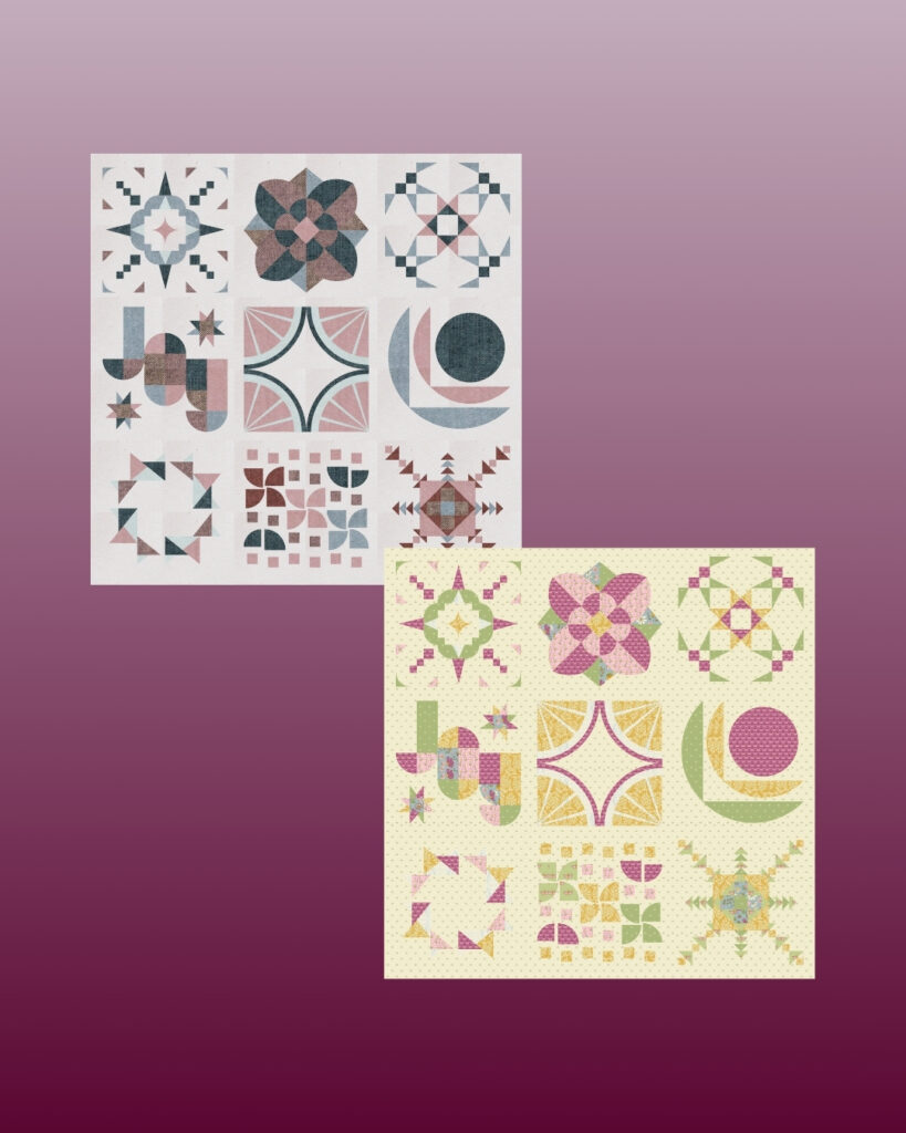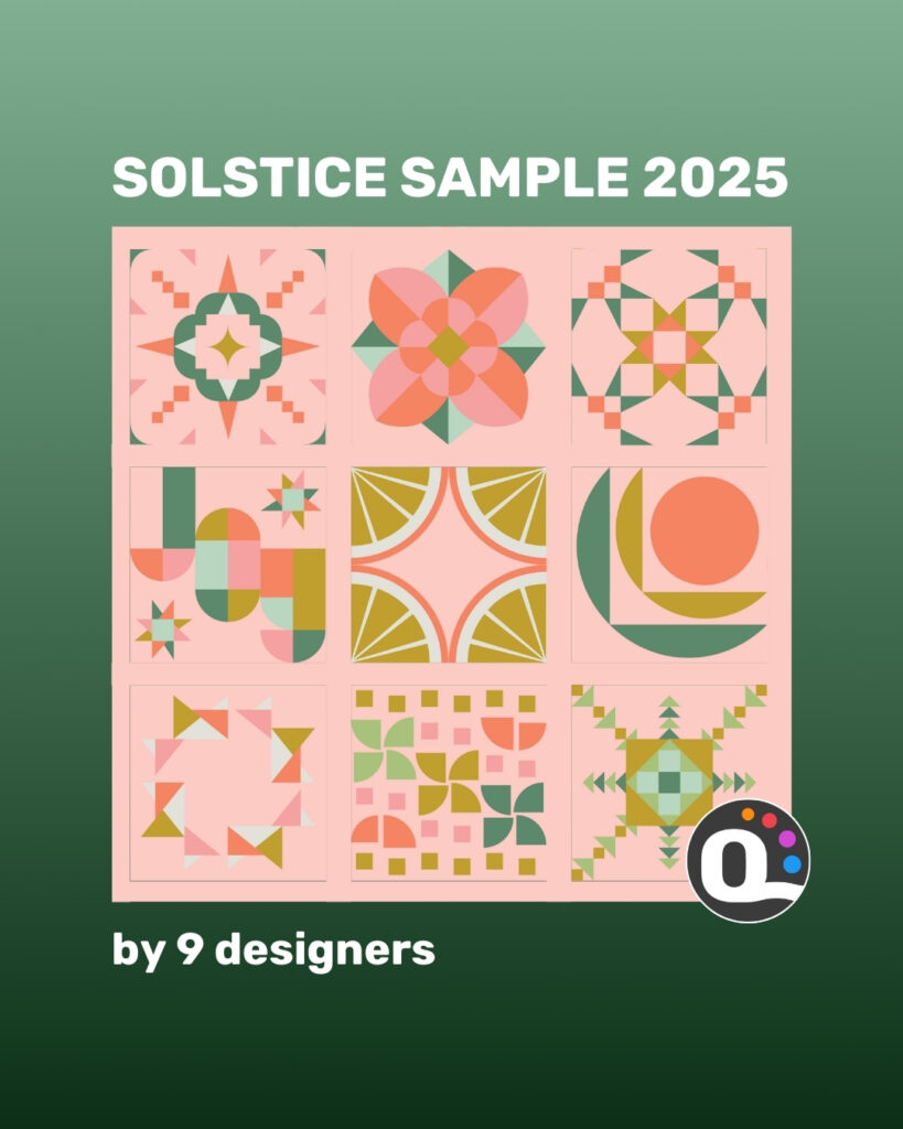 Plan your Solstice Sampler 2025 digitally with QuiltInk, experimenting with solids, prints, and endless color palettes to create a version that feels completely you — all for free.