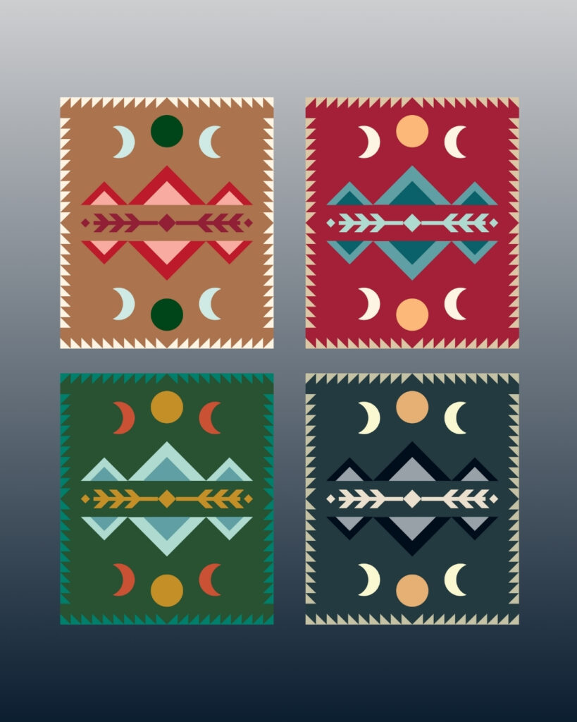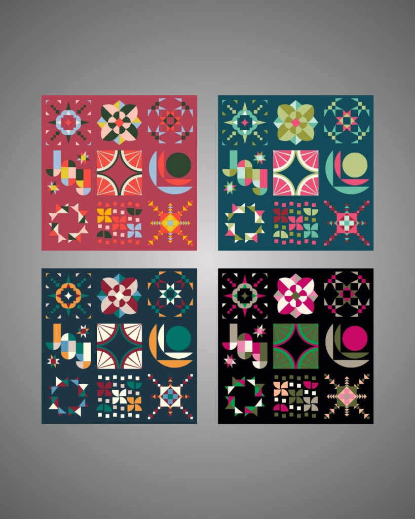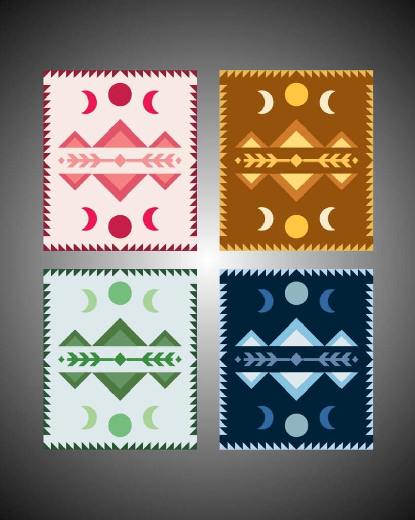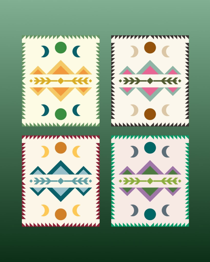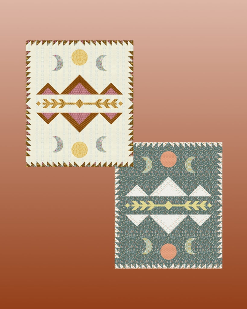 What I love about coloring Demeter on QuiltInk is how each mock-up tells a different story. You can highlight the moons, play with earthy tones for a harvest feeling, or go completely modern with unexpected palettes. And since this pattern has two design options — one with curves and one without — everyone can find the version that feels just right for them.