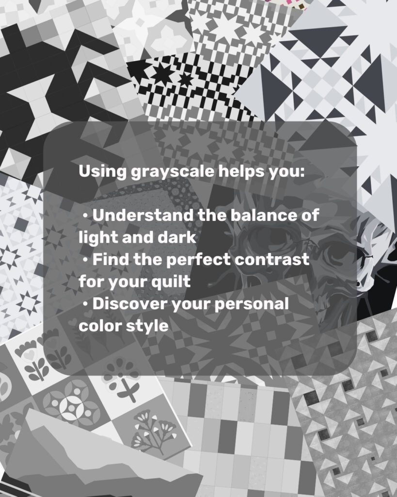 Grayscale is a game-changer for discovering your unique color style, experimenting with prints or solids, and ensuring your final quilt has the perfect balance.