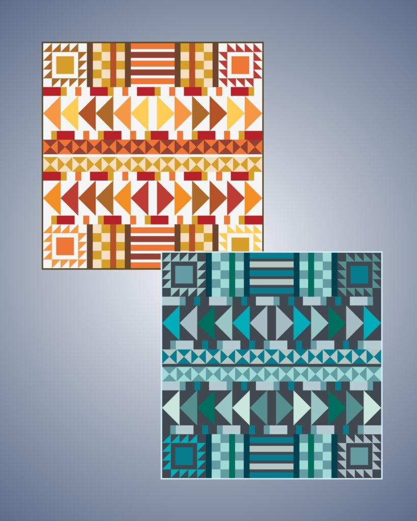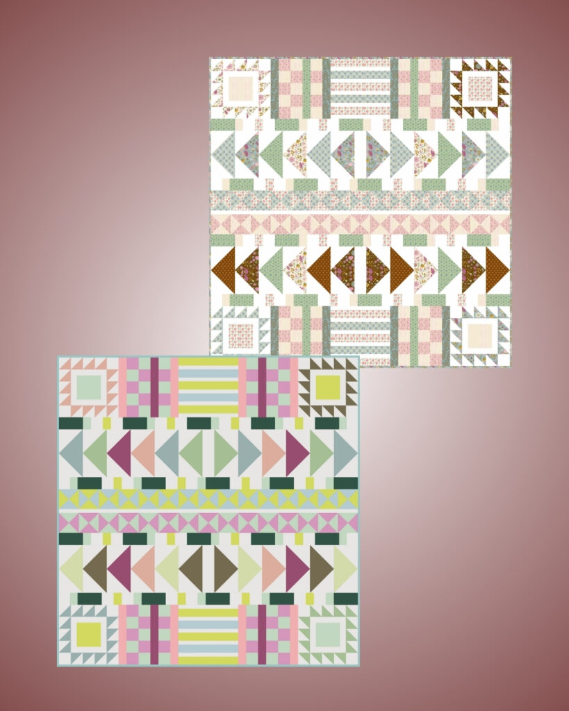 Twilight Palms is a bold, geometric quilt inspired by palm motifs, offered in baby, throw, and twin sizes, with two styles: a colorful modern version or a simplified two-tone classic look. Written for confident beginners and up, it uses efficient piecing methods like 8-at-a-time HSTs and 4-at-a-time flying geese to make the process smooth and fabric-friendly.
