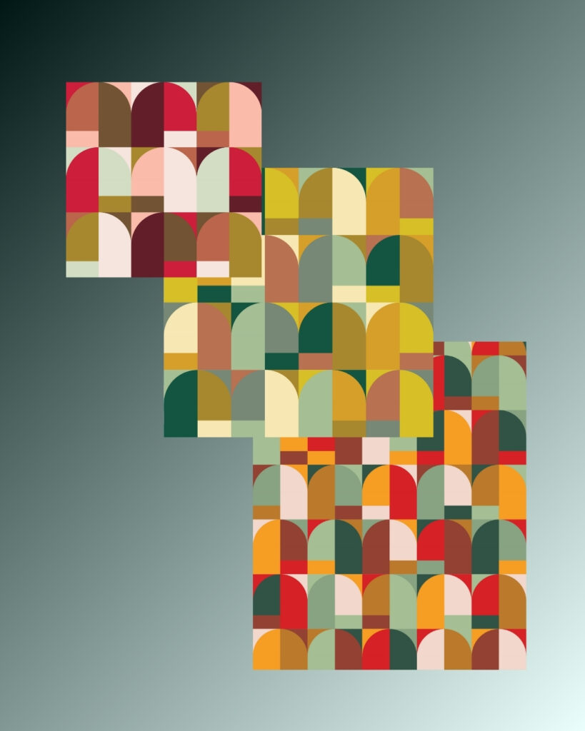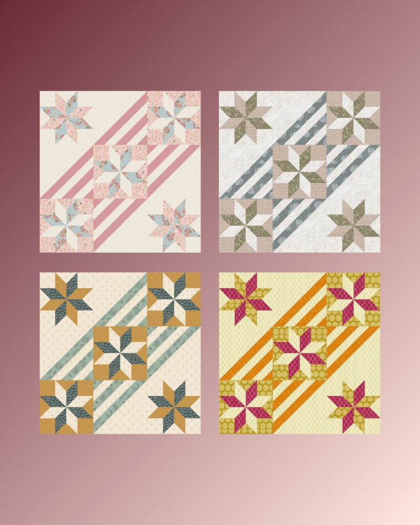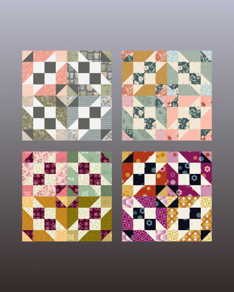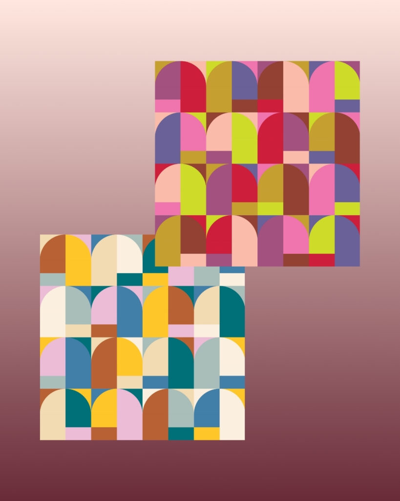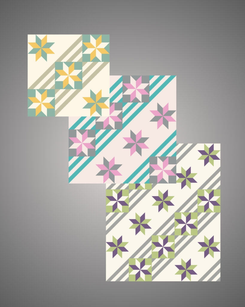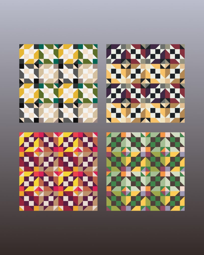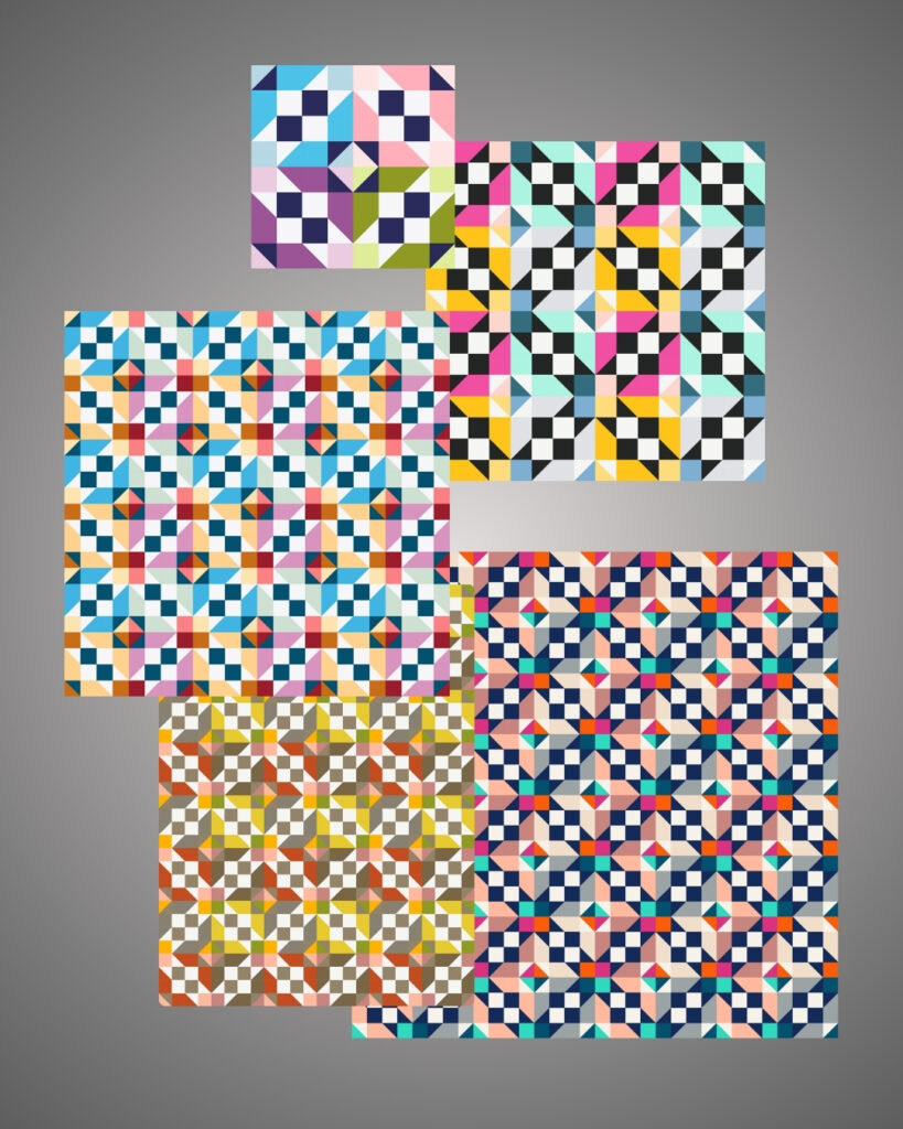 Each post will feature a fresh new palette or fabric update on the platform, along with a handful of mock-ups using patterns available on QuiltInk — just to give you that extra spark of inspiration.