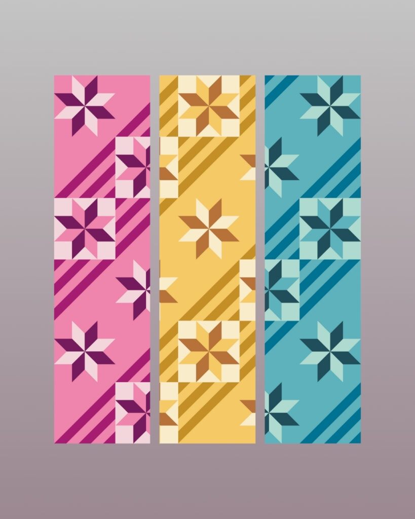 This fun little pattern brings all the retro vibes: think mix tapes, neon lights, and Friday night skate sessions. It’s scrap-friendly, precut-friendly, beginner-friendly… and just full of color possibilities!