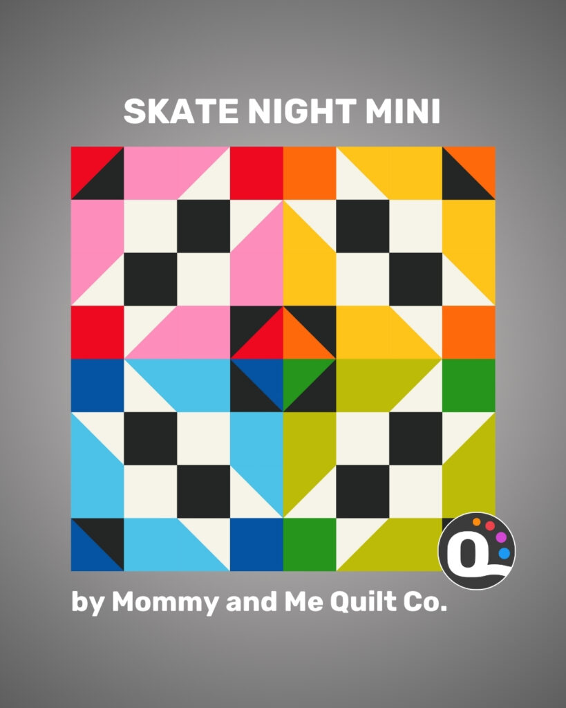The Skate Night Mini quilt pattern by @mommyandmequiltco just dropped — and it’s now ready to color on QuiltInk!