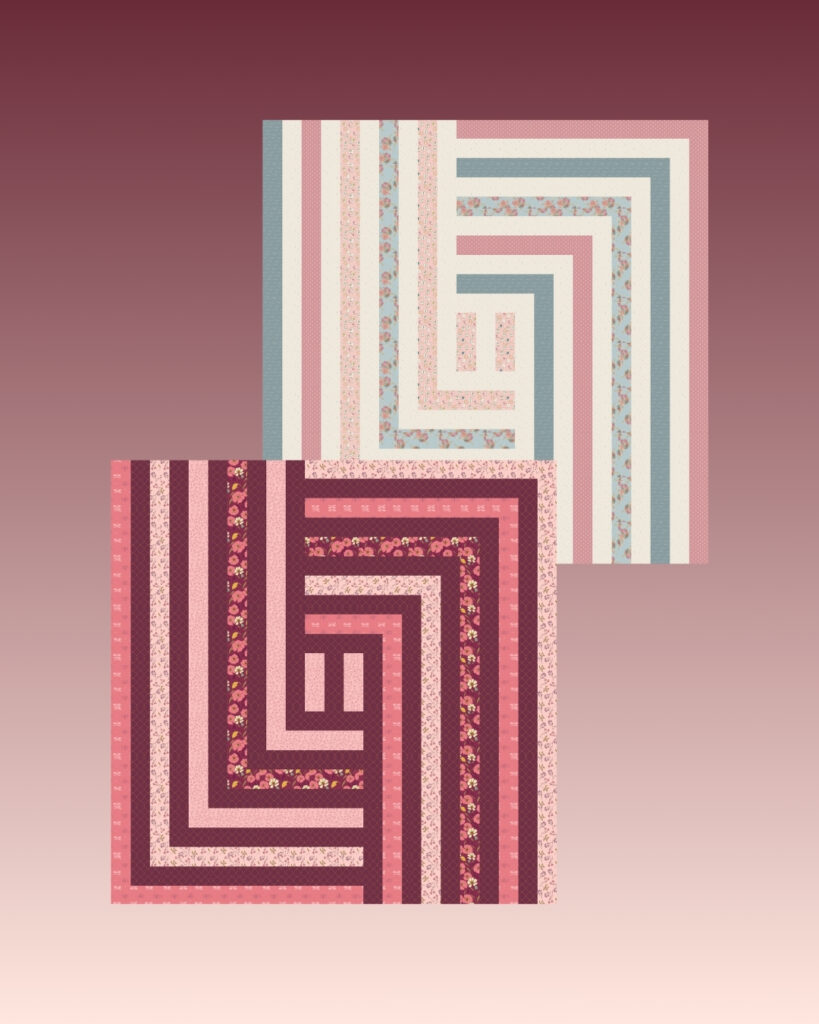 This fresh take on the classic log cabin block adds a modern twist with two center strips and clever strip piecing — making it quick to sew and perfect for showcasing bold solids or favorite fabric bundles. Duo is a versatile quilt pattern that works for confident beginners and seasoned quilters alike.
