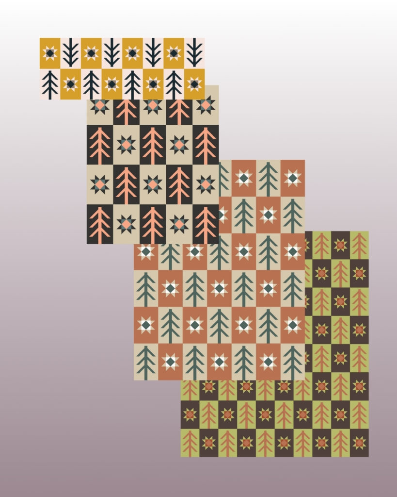I learned how to write patterns through Amber Elliot’s Pattern Writing Academy at Alderwood Studio. It’s a very comprehensive course that taught me everything I needed to know. For me, designing a new pattern usually starts with the desire to make something specific. I picture the quilt in my mind but can’t find a pattern that matches, so I start sketching. I go through many iterations before settling on a final design.