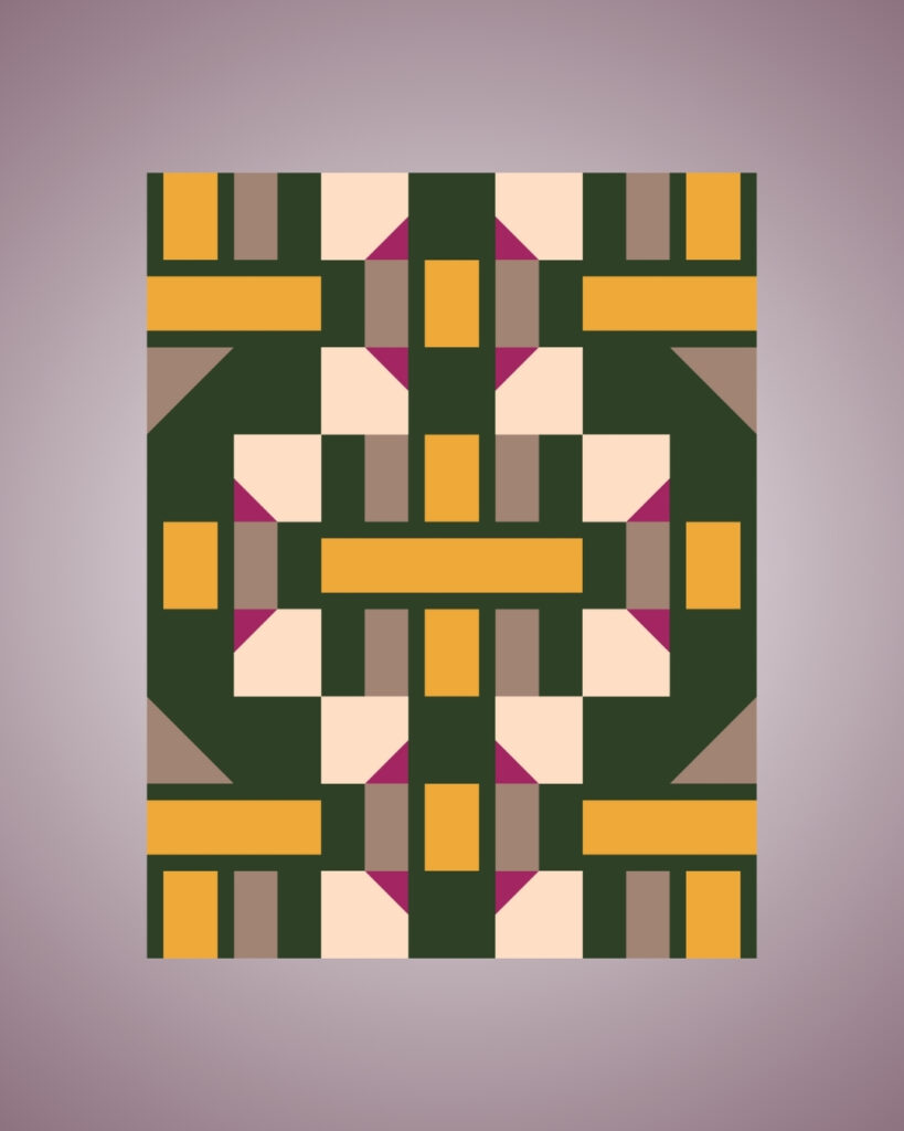 This geometric quilt design is perfect for confident beginners and seasoned quilters alike. It comes together quickly using half-square triangles, partial square-in-a-square, and strip-pieced blocks. And the best part? When you make the Throw size (56” x 72”), you can also make a Mini (15” x 24”) using the offcuts — or follow the Mini-only instructions for a fast finish!